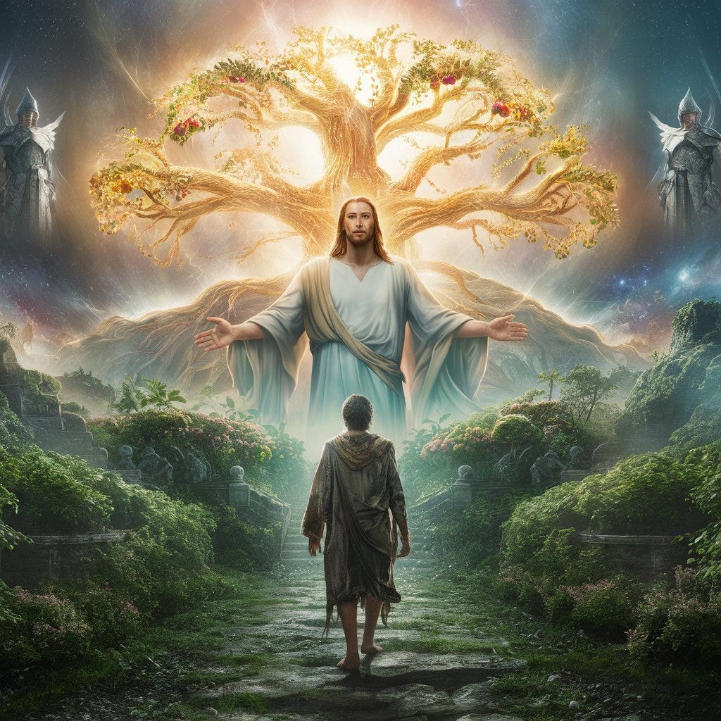The Tree of Life stands in God’s house, just as the father in the parable waits in his house for his child’s return. The Tree of Knowledge represents the temptation of knowledge apart from God, a temptation that began with rebellious angels and culminated in the Fall. Jesus, as the Tree of Life, offers humanity the path back to God’s house, with dignity, authority, and freedom restored, like the prodigal son receiving his robe, ring, and sandals.
